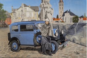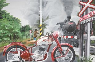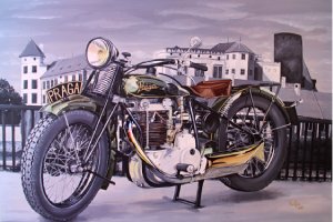 Výběr zakázkových obrazů historických motorek, aut a techniky. Každý obraz vzniká jako originál.
