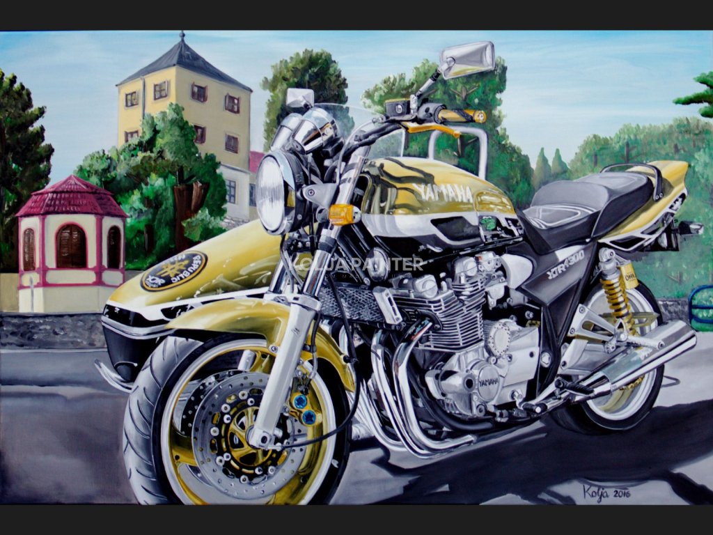 Kubrtovo XJR před Horažďovickým zámkem. Dar od jeho ženy k narozeninám.