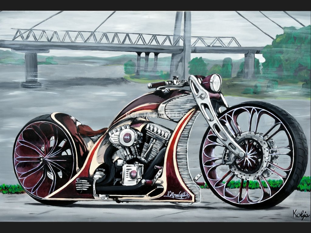 Obraz pro časopis Easyriders. Je to německá stavba, která tenkrát v časopise vyšla včetně této malby. Jedná se o jedem z mých prvních obrazů.